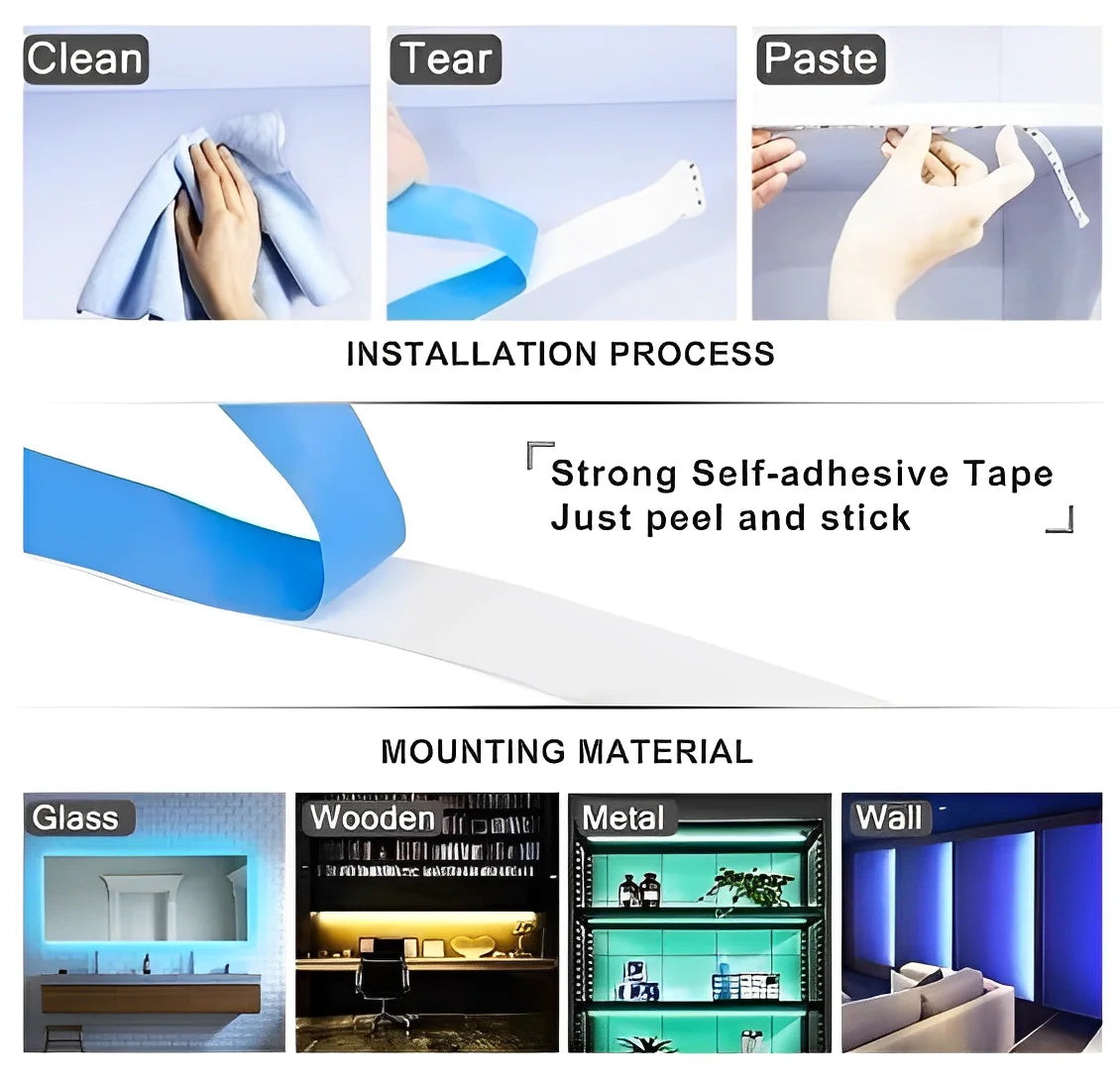 Fita LED RGB de 5 m com fonte e controle de dupla face - Neverdie Store