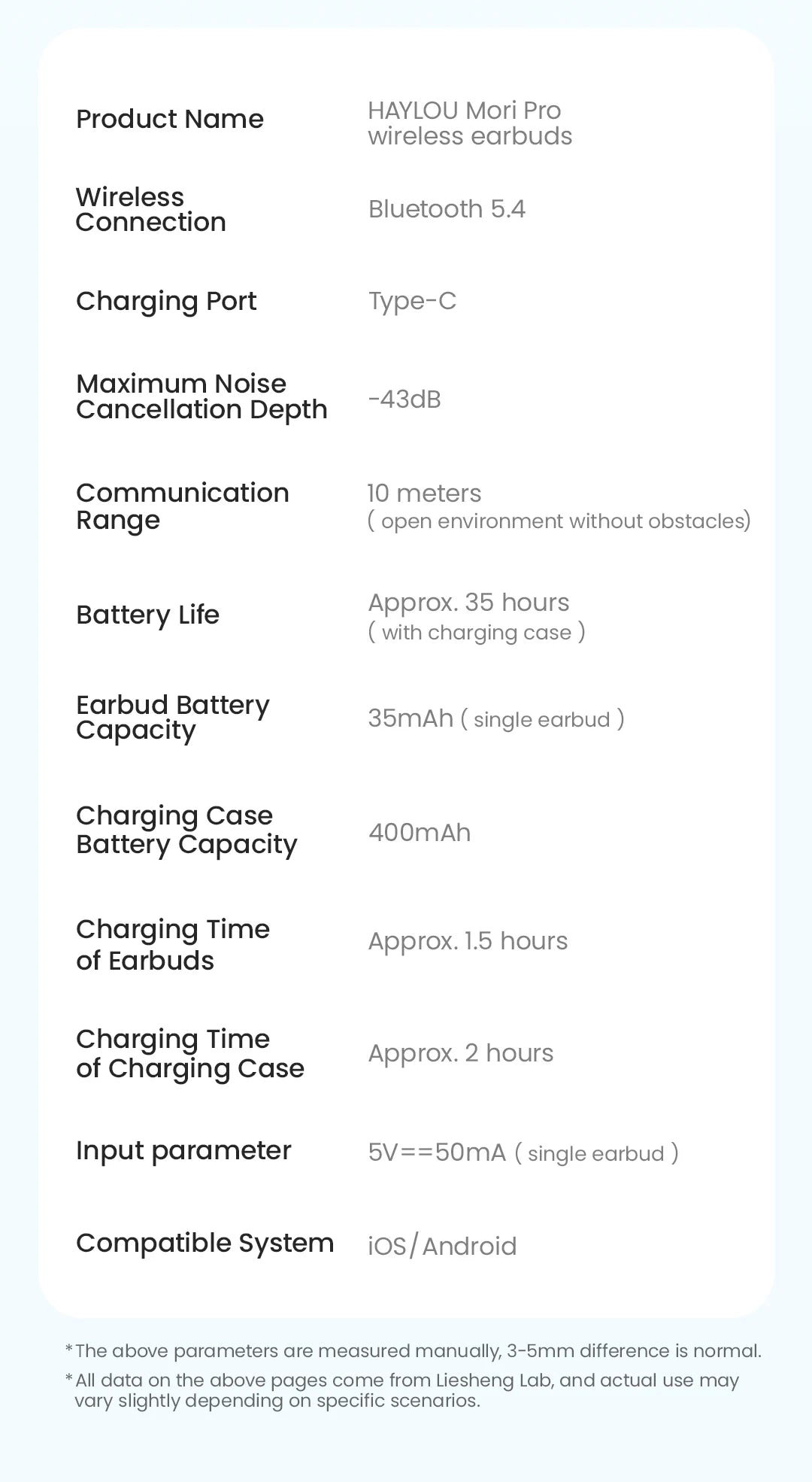 Fones de ouvido HAYLOU Mori Pro Bluetooth 5.4 - 43dB ANC com cancelamento de ruĆdo ativo, fones de ouvido sem fio com 6 microfones e bateria com duração de 35 horas