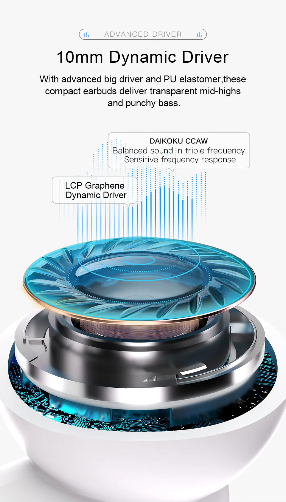 T2 TWS Fones de Ouvido Sem Fio Transparentes – Headset Bluetooth In-Ear com ENC, Fones Esportivos, Display Digital de Energia em LED e Som Estéreo.