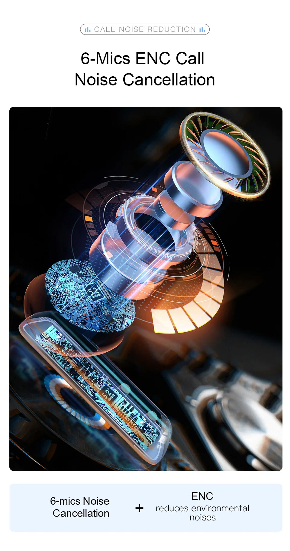 QCY HT10 AilyBuds Pro+ ANC com áudio de alta resolução e Bluetooth 5.3 LDAC, 6 microfones, AI HD, conexão multiponto para chamadas
