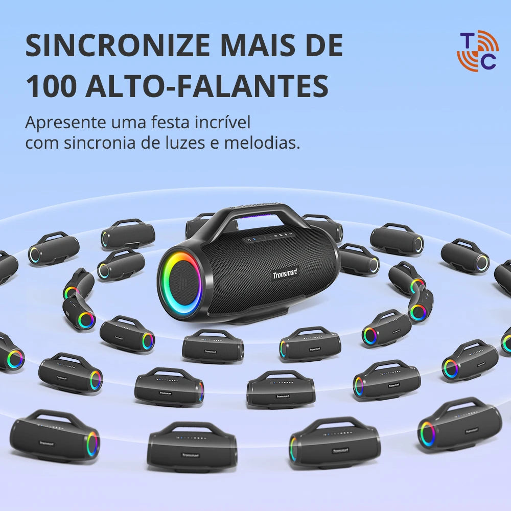 Leve sua festa a outro nÃvel com o Tronsmart Bang Max, o alto-falante Bluetooth portátil com potência monstruosa de 130W! Projetado para quem não abre mão de qualidade, volume e estilo, ele entrega graves profundos, médios nÃtidos e agudos cristalinos com a exclusiva tecnologia SoundPulseâ„¢.